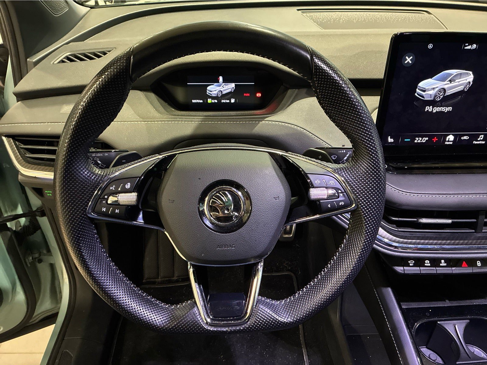 . varmepumpe, originale 20" Skoda sportline alufælge, varme i forrude, multifunktions læderrat m/varme, tonede ruder ibag, 3-zonet klima, bakkamera, 230 volt udtag, indbyggede solgardiner i bagdøre, krom pakke, skiltegenkendelses system, vejbane assistent, park assist, fartpilot, trådløs mobiltlf opladning, sportssæder med alcantar, kørecomputer, digitalt cockpit, ambiente belysning, mørk loftbeklædning, el-klapbare sidespejle m/varme, led baglygter, dynamisk blinklys, navigation, musikstreaming via bluetooth, apple carplay, regnsensor, flot og velholdt vogn med højt udstyrsniveau |